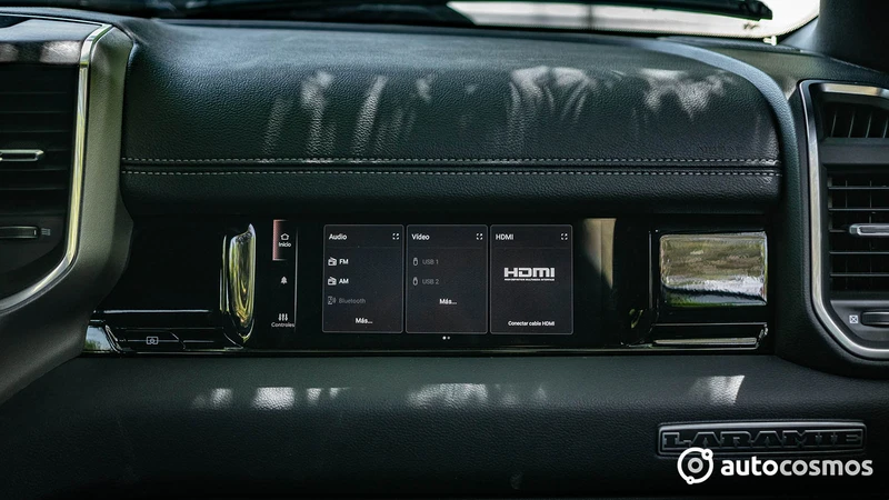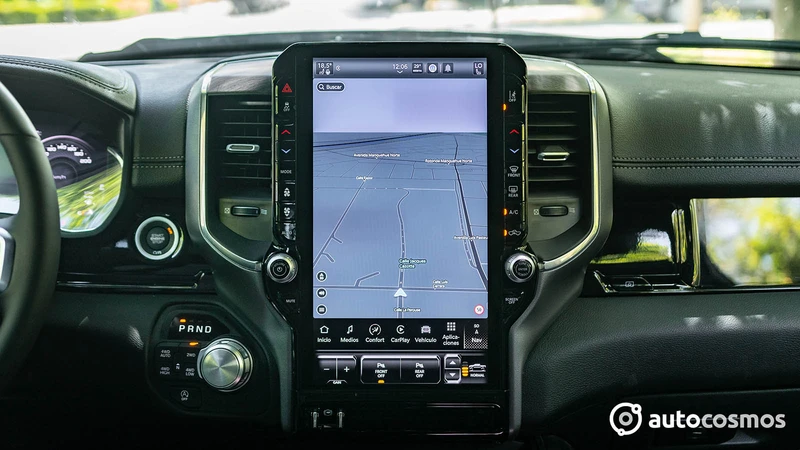 Lamentablemente, la pantalla tiene un ligero retardo que puede ser molesto, pero lo más importante es que RAM no ha dejado de lado los botones ni los comandos físicos para la climatización. Más abajo la 1500 ofrece los controles para el frenado de tráiler, sensores y los ajustes de la suspensión neumática.