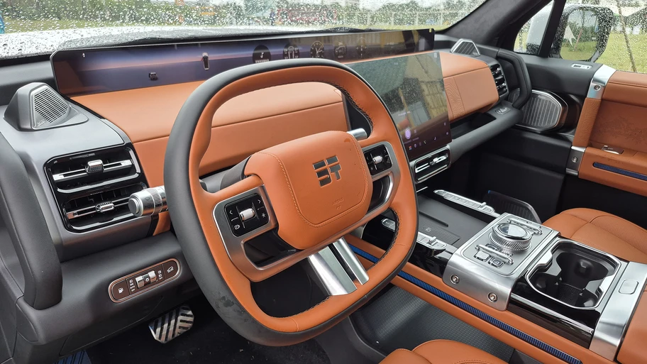 Acá viene lo mejor, primero hay que mencionar que el tablero es muy peculiar cambiando el instrumental convencional por una pantalla angosta de más de 34” que va de lado a lado. También hay que destacar que los controles principales, como la elección de programas de manejo, bloqueos de diferenciales y más están a mano con controles físicos.
