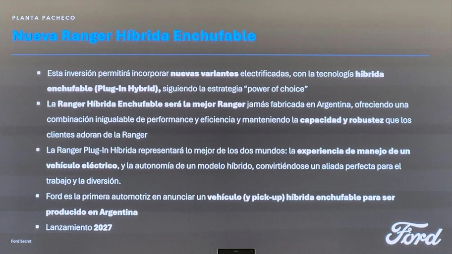 Por ahora, Ford produce la Ranger PHEV en Sudáfrica para algunos pocos mercados, y con la confirmación de la producción nacional, la marca del óvalo es la primera en anunciar que fabricará un modelo híbrido enchufable en Argentina.